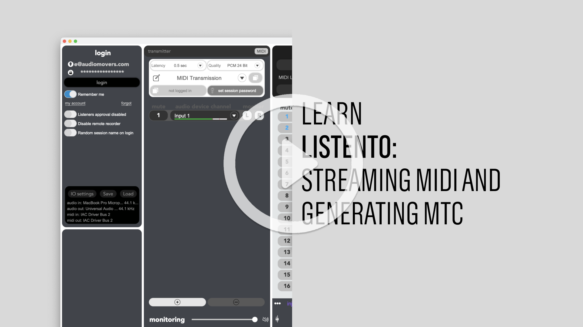 Transmit multichannel audio from any audio device on your computer to anyone in the world. Ideal for broadcast, remote FOH recording/mixing and educators.